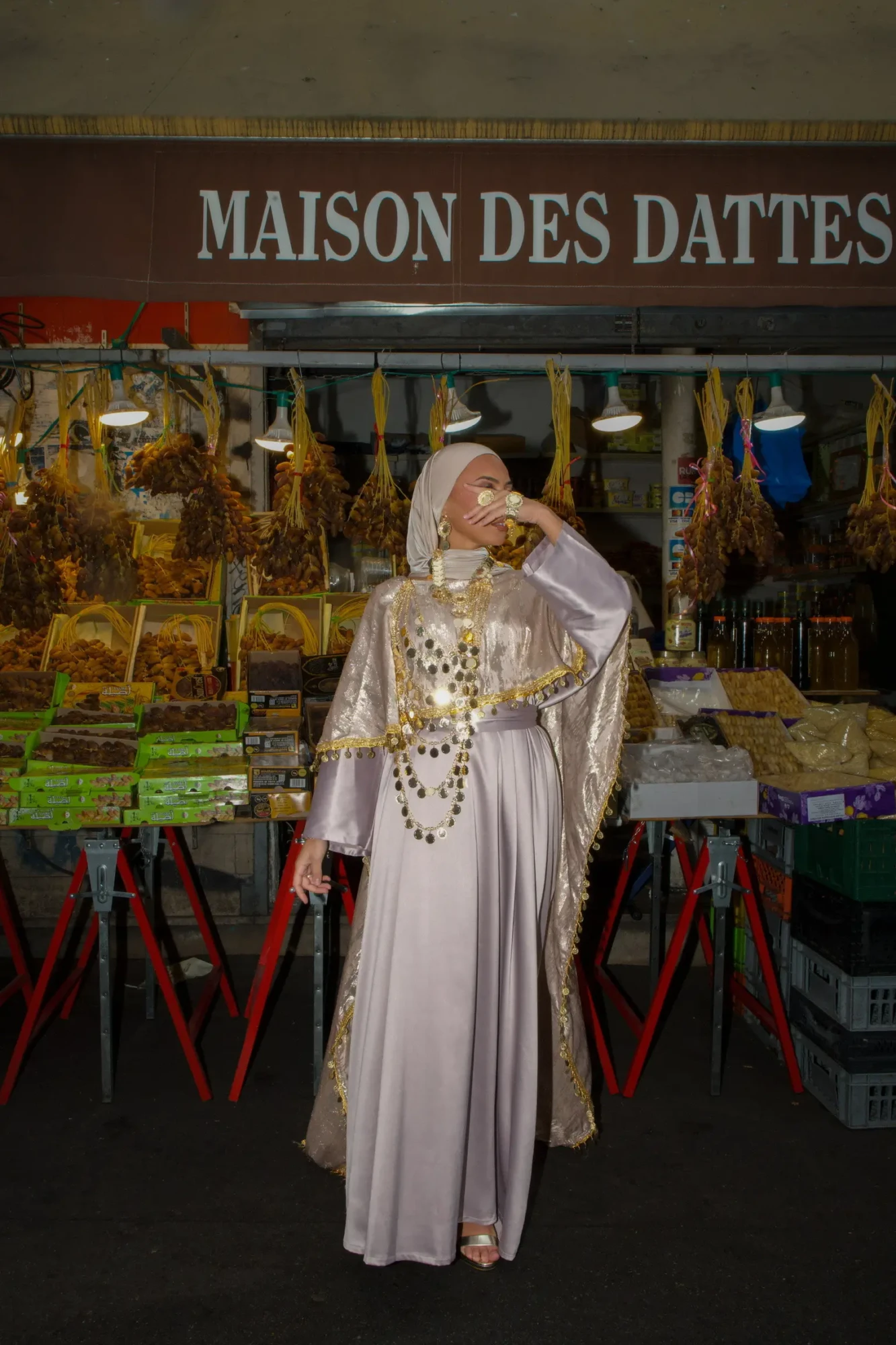 Inspirée des tenues chaouies, la robe Nala se compose d’une sous-robe en satin fluide, sublimée par un tissu décoré formant un drapé au dos. Ses finitions traditionnelles mettent en valeur tout le savoir-faire artisanal de nos ateliers en Algérie.